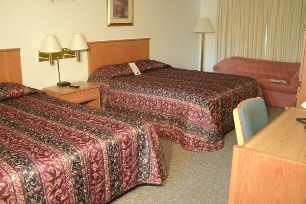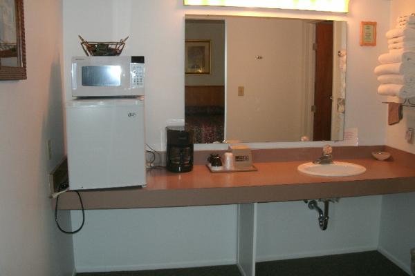 | Our "Regular" Rooms All of our rooms are large, spacious, and contain at least 2 queen sized beds. Microwaves, in-room coffee, cable- TV, small refrigerators, a tub with a shower, free wireless internet, and a large vanity area are all “standard equipment!” Choose from convenient main floor rooms, second floor rooms with a front balcony, or quiet corner rooms. All rooms are decorated to be more like your bedroom than a motel room! |